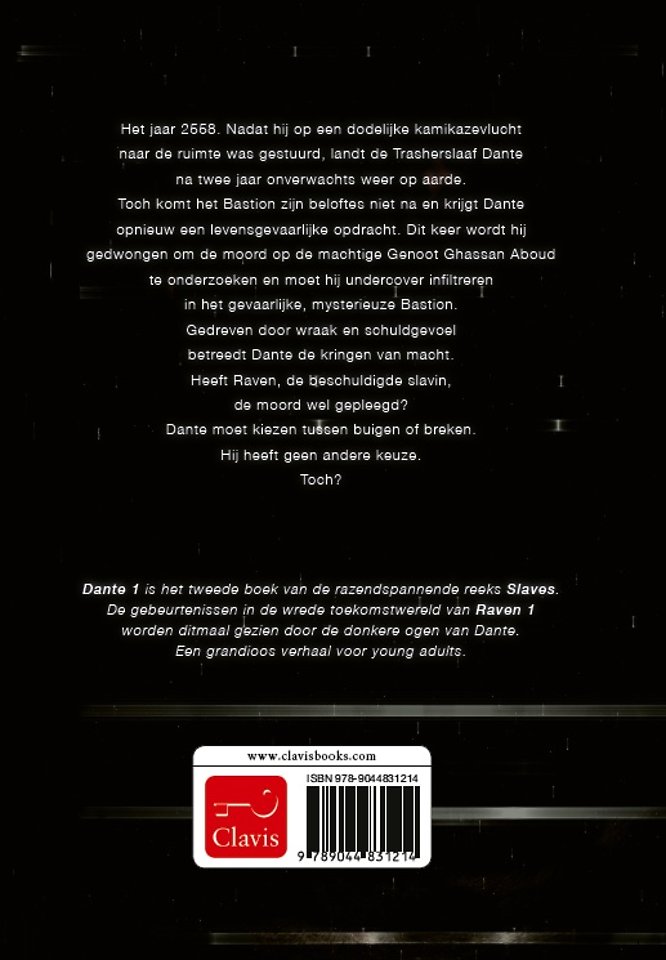Dante 1 is het tweede boek van de razendspannende reeks Slaves. De gebeurtenissen in de wrede toekomstwereld van Raven 1 worden ditmaal gezien door de donkere ogen van Dante. Een grandioos verhaal voor young adults.