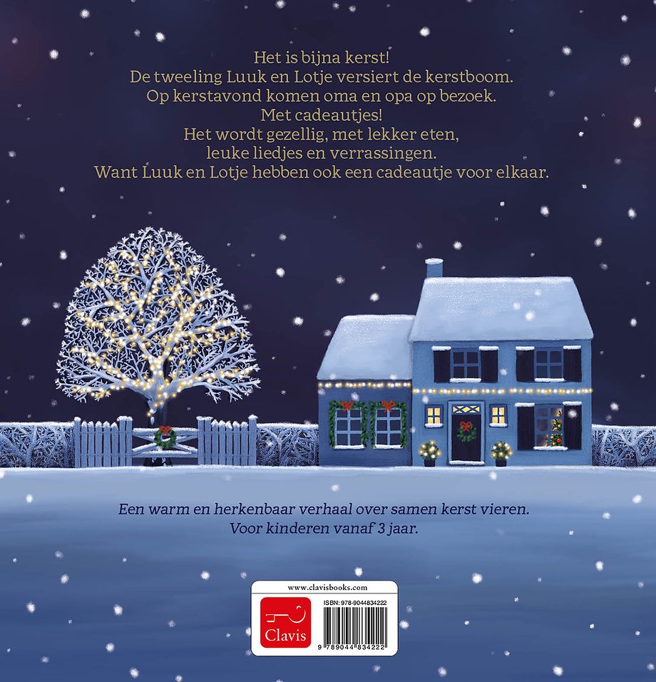 Het is bijna kerst! De tweeling Luuk en Lotje versiert de kerstboom. Op kerstavond komen oma en opa op bezoek. Met cadeautjes! Het wordt gezellig, met lekker eten, leuke liedjes en verrassingen. Want Luuk en Lotje hebben ook een cadeautje voor elkaar.