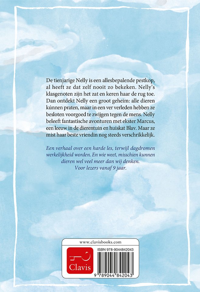 De tienjarige Nelly is een allesbepalende pestkop, al heeft ze dat zelf nooit zo bekeken. Nelly’s klasgenoten zijn het zat en keren haar de rug toe. Dan ontdekt Nelly een groot geheim: alle dieren kúnnen praten, maar in een ver verleden hebben ze besloten voorgoed te zwijgen tegen de mens. Nelly beleeft fantastische avonturen met ekster Marcus, een leeuw in de dierentuin en huiskat Blav. Maar ze mist haar beste vriendin nog steeds verschrikkelijk.