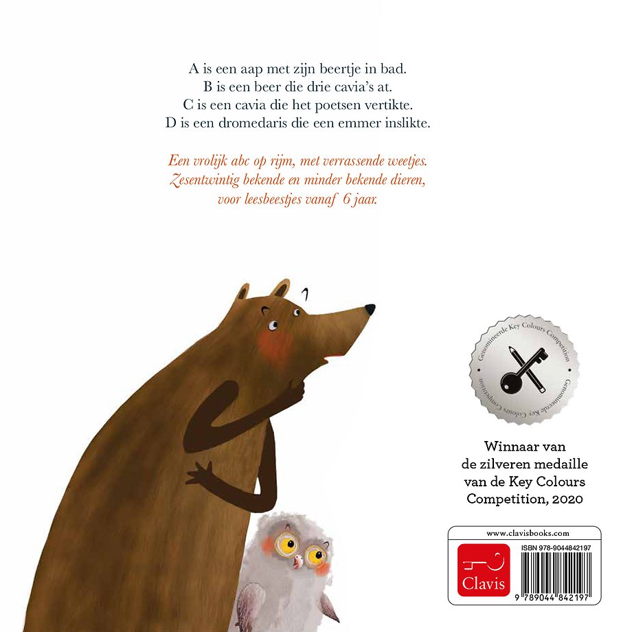Een vrolijk abc op rijm, met verrassende feitjes. Zesentwintig bekende en minder bekende dieren, voor leesbeestjes vanaf 6 jaar.