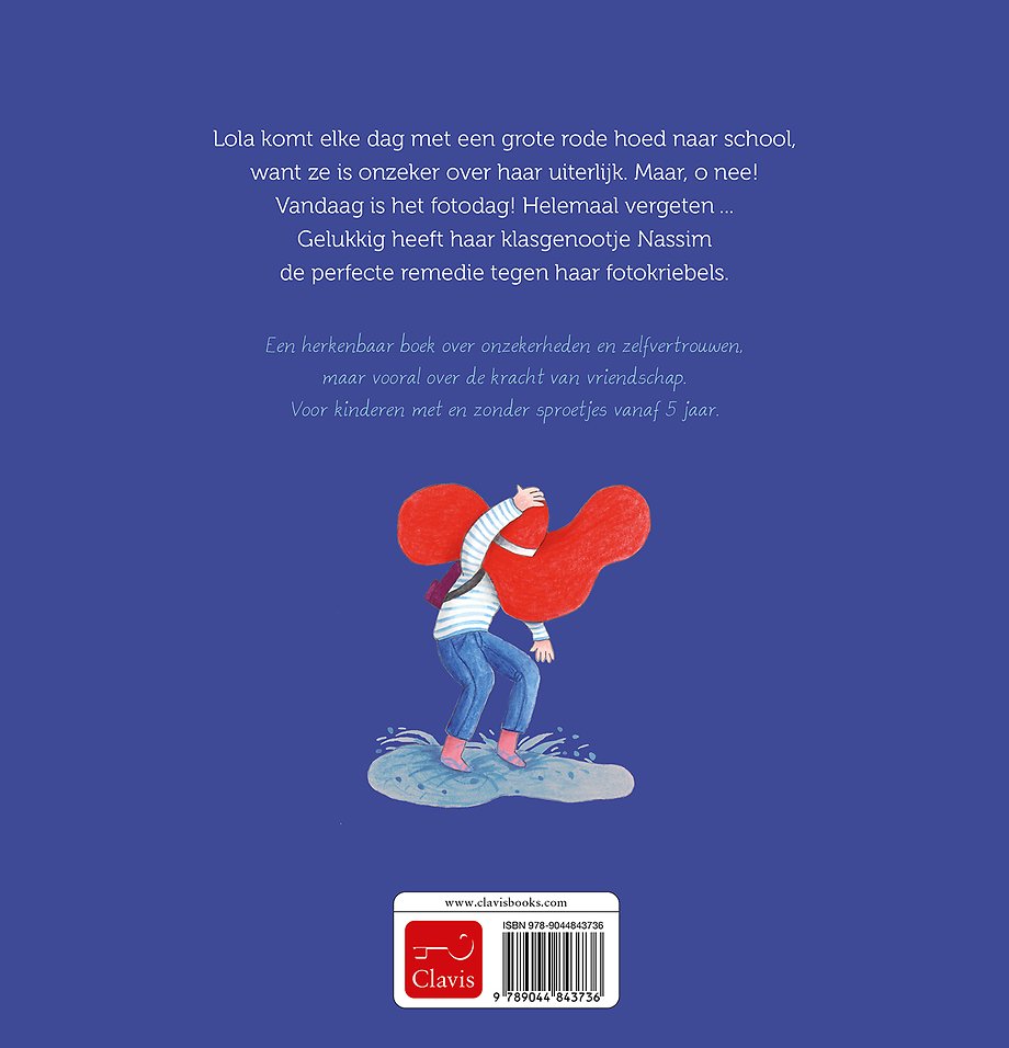 Lola komt elke dag met een grote rode hoed naar school, want ze is onzeker over haar sproetjes. Maar, o nee! Vandaag is het fotodag! Helemaal vergeten … Gelukkig heeft haar klasgenootje Nassim de perfecte remedie tegen haar fotokriebels.