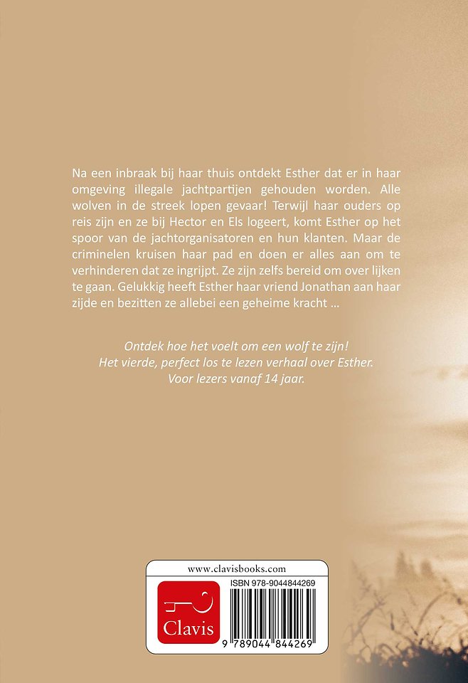 Na een inbraak bij haar thuis ontdekt Esther dat er in haar omgeving illegale jachtpartijen gehouden worden. Alle wolven in de streek lopen gevaar! Terwijl haar ouders op reis zijn en ze bij Hector en Els logeert, komt Esther op het spoor van de jachtorganisatoren en hun klanten. Maar de criminelen kruisen haar pad en doen er alles aan om te verhinderen dat ze ingrijpt. Ze zijn zelfs bereid om over lijken te gaan. Gelukkig heeft Esther haar vriend Jonathan aan haar zijde en bezitten ze allebei een geheime kracht...
