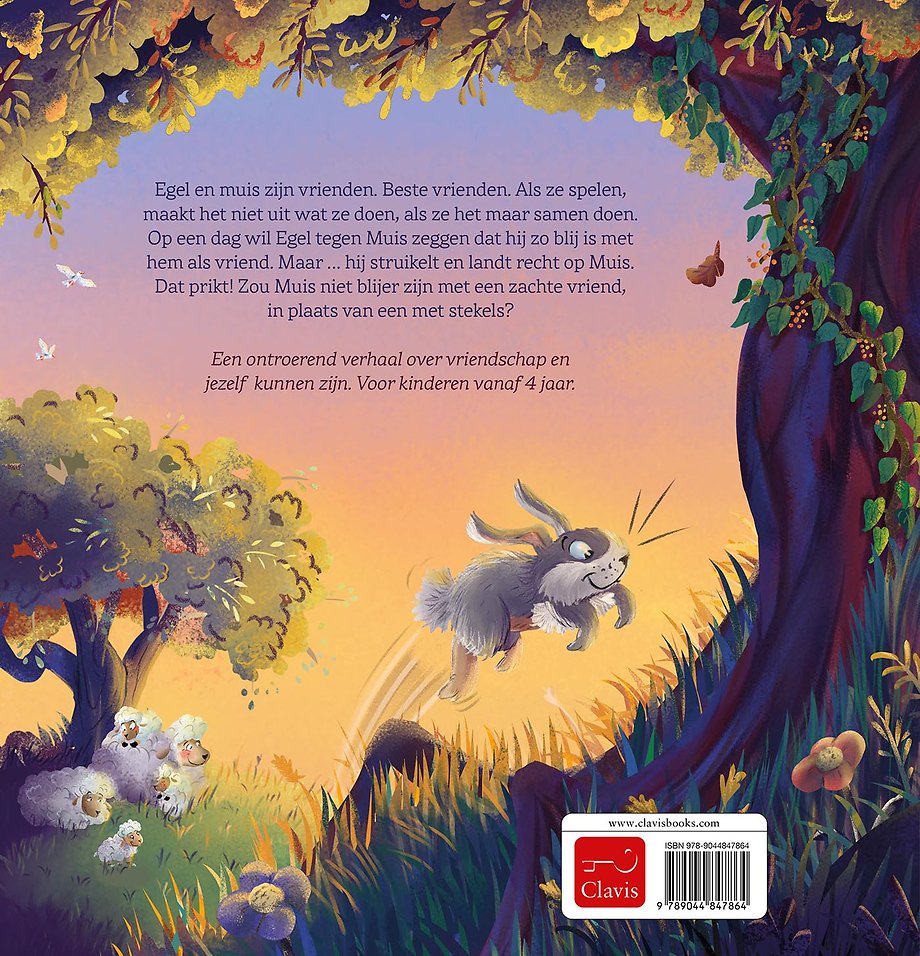 Egel en muis zijn vrienden. Beste vrienden. Als ze spelen, maakt het niet uit wat ze doen, als ze het maar samen doen. Op een dag wil Egel tegen Muis zeggen dat hij zo blij is met hem als vriend. Maar … hij struikelt en landt recht op Muis. Dat prikt! Zou Muis niet blijer zijn met een zachte vriend, in plaats van een met stekels?