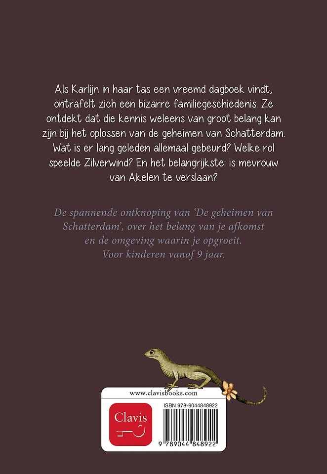 Als Karlijn in haar tas een vreemd dagboek vindt, ontrafelt zich een bizarre familiegeschiedenis. Ze ontdekt dat die kennis weleens van groot belang kan zijn bij het oplossen van de geheimen van Schatterdam. Wat is er lang geleden allemaal gebeurd? Welke rol speelde Zilverwind? En het belangrijkste: is mevrouw van Akelen te verslaan?