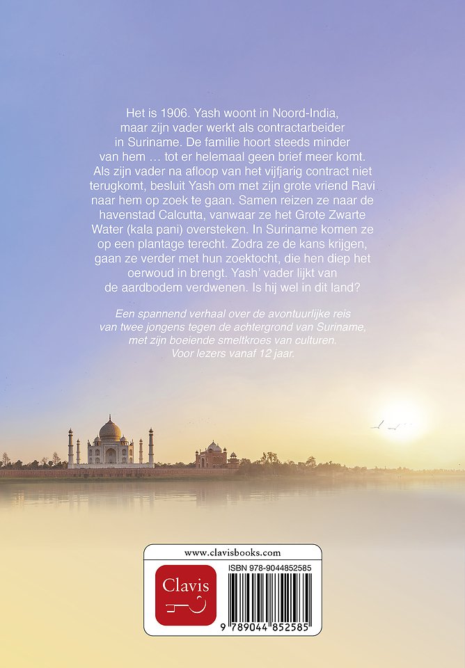 Het is 1906. Yash woont in Bihar, Noord-India. Zijn vader werkt als contractarbeider in Suriname, de familie hoort steeds minder… tot er helemaal geen brief meer komt. Als zijn vader na afloop van zijn vijfjarig contract niet terugkomt, besluit Yash met zijn vriend Ravi naar hem op zoek te gaan. Samen reizen ze naar de havenstad Calcutta, vanwaar de schepen het Grote Zwarte Water (de kala pani) oversteken. Daar komen ze terecht op een plantage. Zodra ze de kans krijgen, gaan ze weer verder met hun zoektocht, die hen diep het oerwoud in brengt. Yash’ vader lijkt van de aardbodem verdwenen. Is hij wel in dit land?