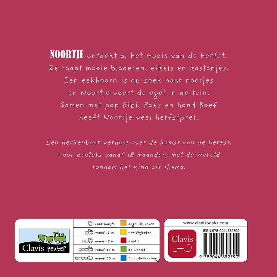 Samen met pop Bibi, Poes en hond Boef heeft Noortje veel herfstpret.