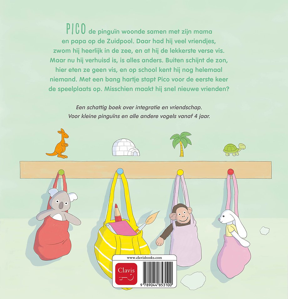 Pico de pinguïn woonde samen met zijn mama en papa op de Zuidpool. Daar had hij veel vriendjes, zwom hij heerlijk in de zee, en at hij de lekkerste verse vis. Maar nu hij verhuisd is, is alles anders. Buiten schijnt de zon, hier eten ze geen vis, en op school kent hij nog helemaal niemand. Met een bang hartje stapt Pico voor de eerste keer de speelplaats op. Misschien maakt hij snel nieuwe vriendjes?