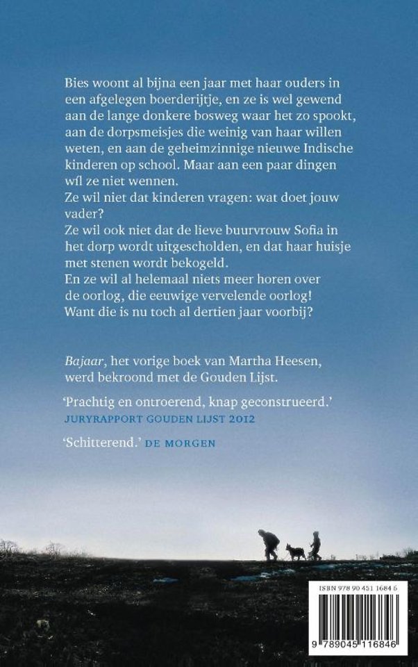 Bies woont al bijna een jaar met haar ouders in een afgelegen boerderijtje, en ze is wel gewend aan de lange donkere bosweg waar het zo spookt, aan de dorpsmeisjes die weinig van haar willen weten, en aan de geheimzinnige nieuwe Indische kinderen op school. Maar aan een paar dingen wíl ze niet wennen.