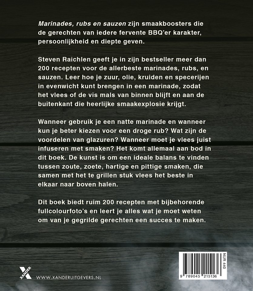 Steven Raichlen geeft je in zijn bestseller meer dan 200 recepten voor de allerbeste marinades, rubs en sauzen. Leer hoe je zuur, olie en smaken in evenwicht kunt brengen in een marinade, zodat het vlees mals blijft en aan de buitenkant die heerlijke explosie van smaken geeft. Wanneer gebruik je een natte marinade en wanneer kun je beter kiezen voor een droge rub? Wat zijn de voordelen van glazuren? Wanner moet je vlees juist infuseren met smaken? Het komt allemaal aan bod in BBQ-sauzen, rubs en marinades.