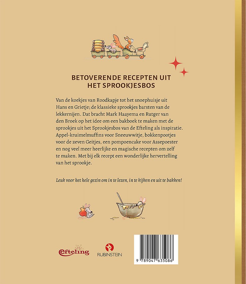 Van de koekjes van Roodkapje tot het snoephuisje uit Hans en Grietje; de klassieke sprookjes barsten van de lekkernijen. Dat bracht Mark Haayema en Rutger van den Broek op het idee om een bakboek te maken met de sprookjes uit het Sprookjesbos van de Efteling als inspiratie. Appel-kruimelmuffins voor Sneeuwwitje, bokkenpootjes voor de zeven Geitjes, een pompoencake voor Assepoester en nog veel meer heerlijke en magische recepten om zelf te maken. Met bij elk recept een wonderlijke hervertelling van het sprookje.