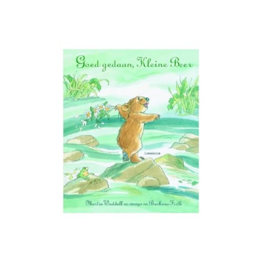 Kleine Beer gaat op ontdekkingsreis in het bos. Hij klimt op rotsen, springt op takken en stenen, tot... plons!