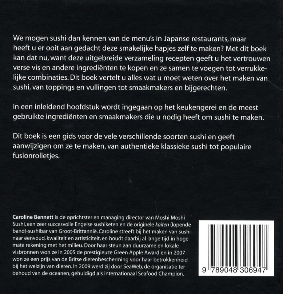 We mogen sushi dan kennen van de menu's in Japanse restaurants, maar heeft u er ooit aan gedacht deze smakelijke hapjes zelf te maken? Met dit boek kan dat nu, want deze uitgebreide verzameling recepten geeft u het vertrouwen verse vis en andere ingrediënten te kopen en ze samen te voegen tot verrukkelijke combinaties. Dit boek vertelt u alles wat u moet weten over het maken van sushi, van toppings en vullingen tot smaakmakers en bijgerechten.
