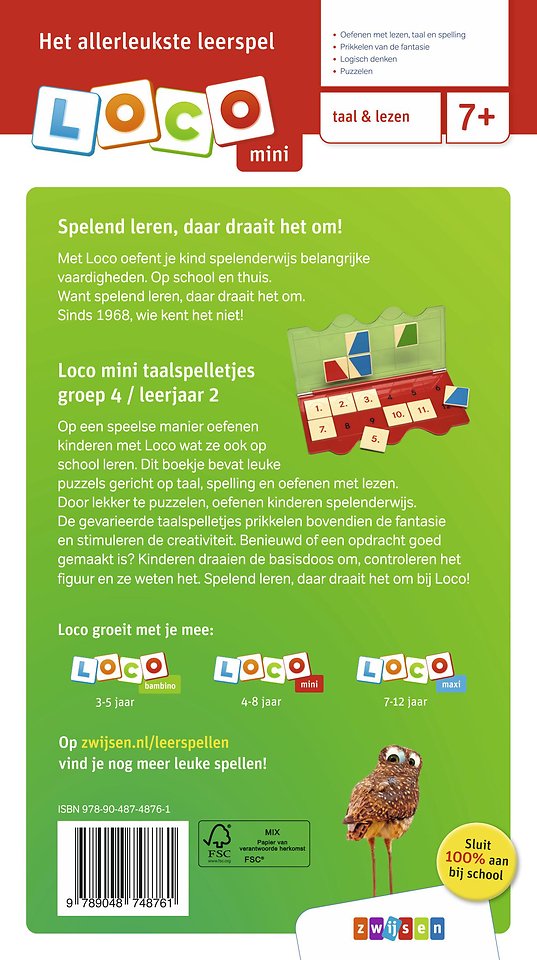 Op een speelse manier oefenen kinderen met Loco wat ze ook op school leren. Dit boekje bevat leuke puzzels gericht op taal, spelling en oefenen met lezen. Door lekker te puzzelen leren kinderen spelenderwijs. De gevarieerde taalspelletjes prikkelen bovendien de fantasie en stimuleren de creativiteit. Benieuwd of een opdracht goed gemaakt is? Kinderen draaien de basisdoos om, controleren het figuur en ze weten het. Spelend leren, daar draait het om bij Loco!