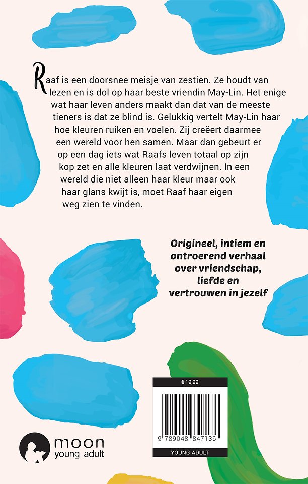 Raaf is een gewoon meisje van zestien. Ze houdt van verhalen en is dol op haar beste vriendin May-Lin. Het enige wat haar leven anders maakt dan dat van de meeste tieners, is dat ze blind is.Gelukkig vertelt May-Lin haar hoe kleuren ruiken en voelen. Zij creëert daarmee een wereld voor hen samen. Dan gebeurt er op een dag iets wat Raafs leven helemaal op zijn kop zet en alle kleuren laat verdwijnen. In een wereld die niet alleen haar kleur maar ook haar glans kwijt is, moet Raaf haar eigen weg zien te vinden.