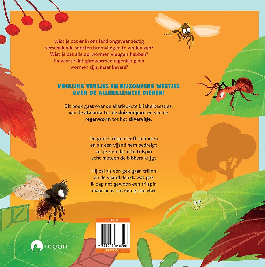 Een grappig en leerzaam boek met daarin heel veel versjes en weetjes over insecten en andere kleine kriebelbeestjes. Zowel kinderen als volwassenen zullen zich verwonderen over alle bijzondere dingen die zich in de natuur afspelen. Want wie wist er bijvoorbeeld dat een huisvlieg proeft met zijn pootjes? Of dat een hommel zichzelf warm kan bibberen als hij het koud heeft?