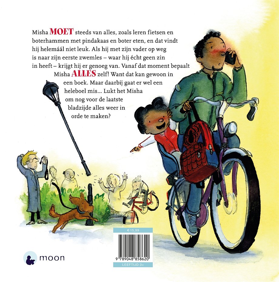 Misha MOET steeds van alles, zoals leren fietsen en boterhammen met pindakaas en boter eten, en dat vindt hij helemáál niet leuk. Als hij met zijn vader op weg is naar zijn eerste zwemles - waar hij écht geen zin in heeft - krijgt hij er genoeg van. Vanaf dat moment bepaalt Misha ALLES zelf! Want dat kan gewoon in een boek. Maar daarbij gaat er wel een heleboel mis... Lukt het Misha om nog voor de laatste bladzijde alles weer in orde te maken?