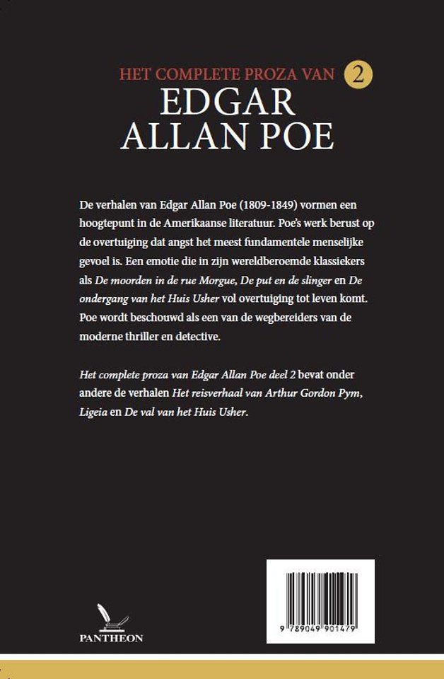 Het complete proza van Edgar Allan Poe deel 2 bevat onder andere de verhalen Het reisverhaal van Arthur Gordon Pym, Ligeia en De val van het Huis Usher.