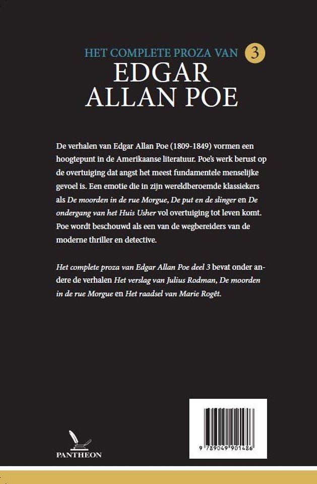 Het complete proza van Edgar Allan Poe deel 3 bevat onder andere de verhalen Het verslag van Julius Rodman, De moorden in de rue Morgue en Het raadsel van Marie Rogêt.