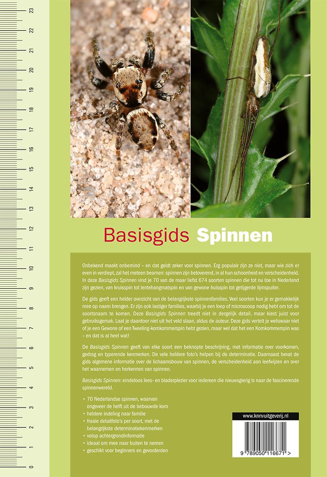 Het behandelt 70 algemene spinnensoorten, met compacte teksten en prachtige kleurenfoto’s per soort.