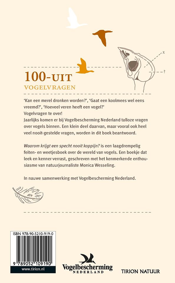 ‘Kan een merel dronken worden?’, ‘Gaat een koolmees wel eens vreemd?’, ‘Hoeveel veren heeft een vogel?’ Vogelvragen te over! Jaarlijks komen er bij Vogelbescherming Nederland honderden vragen binnen over verschillende vogelsoorten. Een deel van die vragen en vooral veel nooit-gestelde vragen worden in dit boek beantwoord. Waarom krijgt een specht geen koppijn? is een laagdrempelig feiten- en weetjesboek over de wereld van vogels.