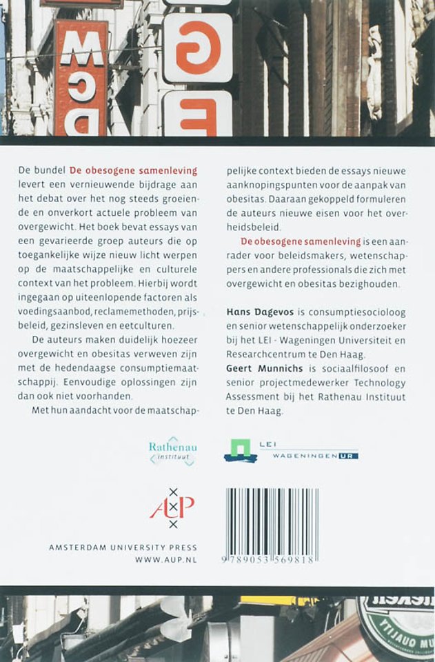 De obesogene samenleving levert een vernieuwende bijdrage aan het maatschappelijke en politieke debat over de nog steeds groeiende en onverkort actuele overgewichtproblematiek. Op toegankelijke wijze wordt vanuit verschillende perspectieven nieuw licht geworpen op de maatschappelijke en culturele context van overgewicht. De drieëntwintig auteurs ma