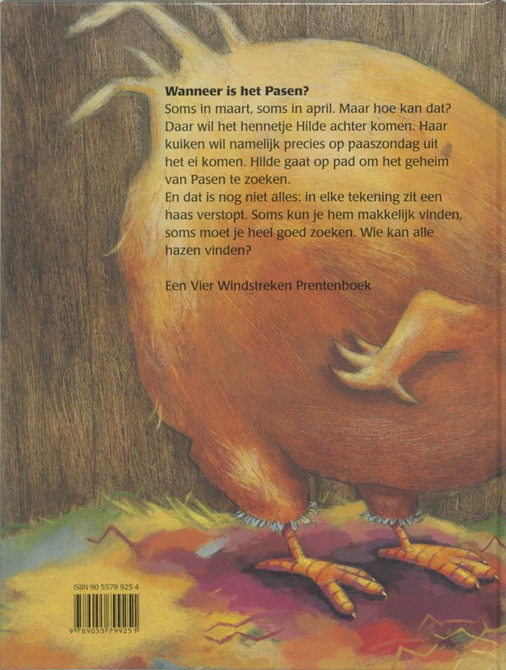 Soms in maart, soms in april. Maar hoe kan dat? Daar wil het hennetje Hilde achter komen. Haar kuiken wil namelijk precies op paaszondag uit het ei komen. Hilde gaat op pad om het geheim van Pasen te zoeken.