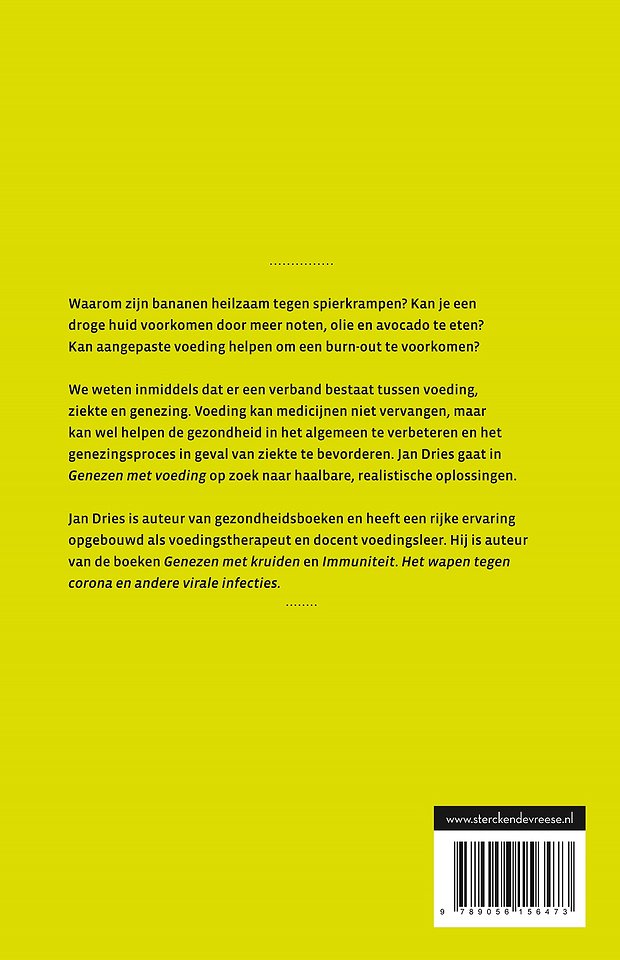 We weten inmiddels dat er een verband bestaat tussen voeding, ziekte en genezing. Voeding kan medicijnen niet vervangen, maar kan wel helpen de gezondheid in het algemeen te verbeteren en het genezingsproces in geval van ziekte te bevorderen. Jan Dries gaat in Genezen met voeding op zoek naar haalbare, realistische oplossingen.