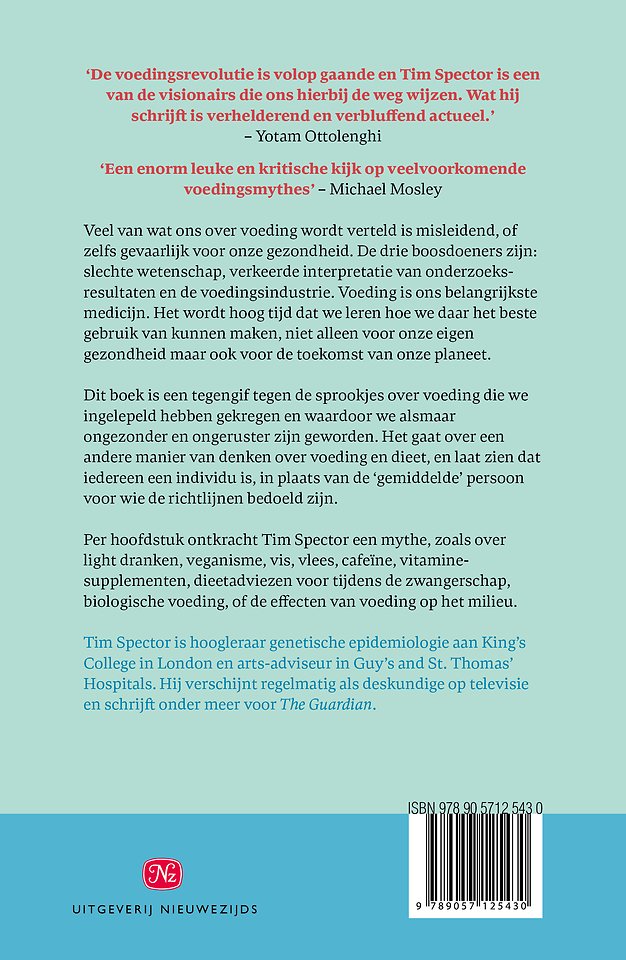 Tim Spector is hoogleraar genetische epidemiologie aan King’s College in London en arts-adviseur in Guy’s and St. Thomas’ Hospitals. Hij verschijnt regelmatig als deskundige op televisie en schrijft onder meer voor The Guardian.