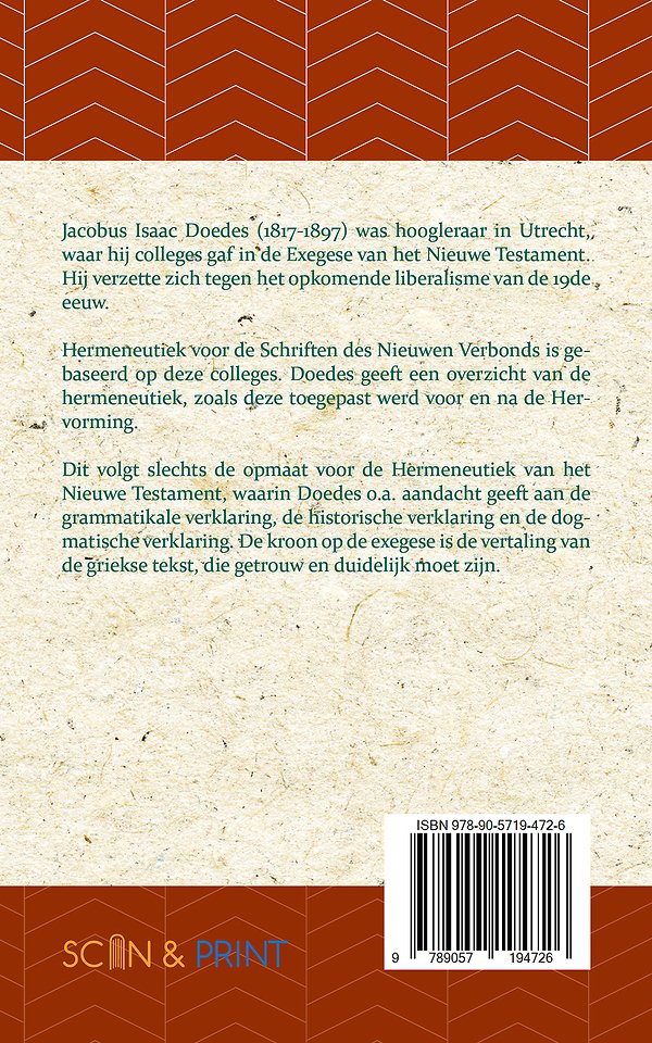 Hermeneutiek voor de Schriften des Nieuwen Verbonds is gebaseerd op deze colleges. Doedes geeft een overzicht van de hermeneutiek, zoals deze toegepast werd voor en na de Hervorming.