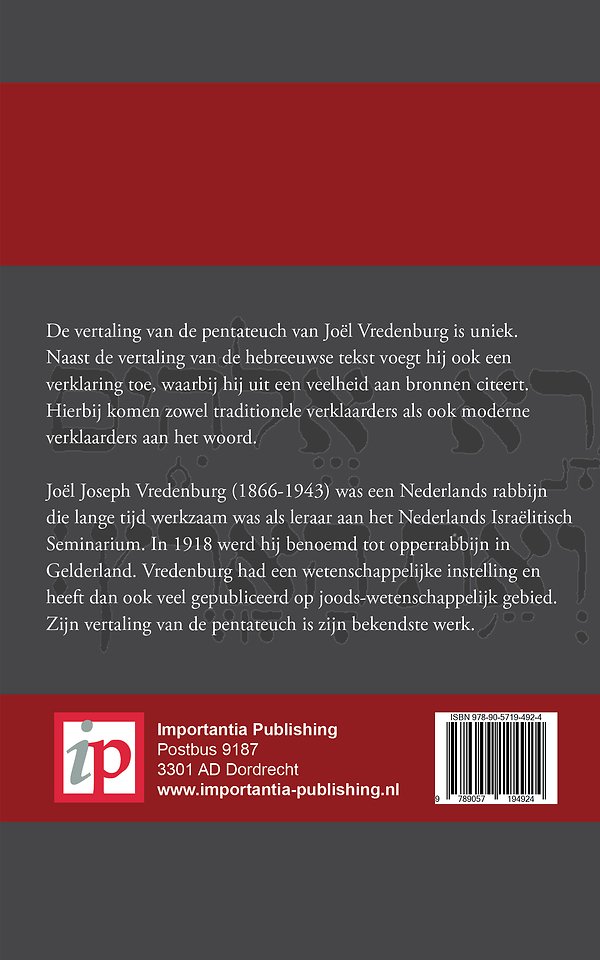 De vertaling van de pentateuch van Joël Vredenburg is uniek. Naast de vertaling van de hebreeuwse tekst voegt hij ook een verklaring toe, waarbij hij uit een veelheid aan bronnen citeert. Hierbij komen zowel traditionele verklaarders als ook moderne verklaarders aan het woord.