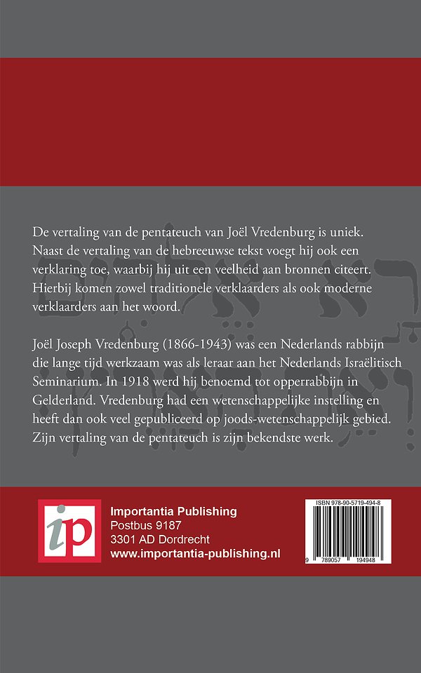 De vertaling van de pentateuch van Joël Vredenburg is uniek. Naast de vertaling van de hebreeuwse tekst voegt hij ook een verklaring toe, waarbij hij uit een veelheid aan bronnen citeert. Hierbij komen zowel traditionele verklaarders als ook moderne verklaarders aan het woord.