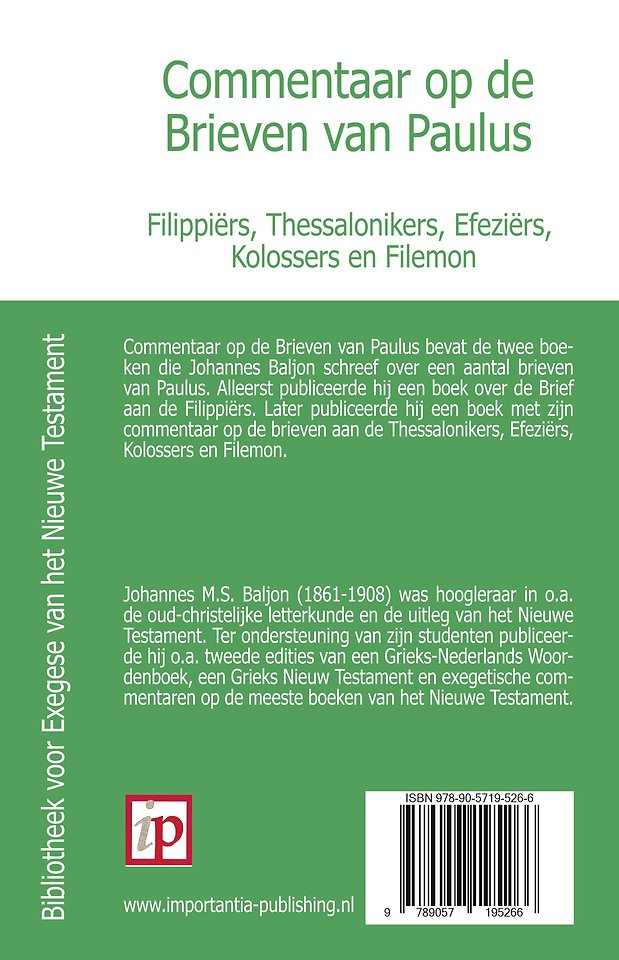 Commentaar op de Brieven van Paulus bevat de twee boeken die Johannes Baljon schreef over een aantal brieven van Paulus. Alleerst publiceerde hij een boek over de Brief aan de Filippiërs. Later publiceerde hij een boek met zijn commentaar op de brieven aan de Thessalonikers, Efeziërs, Kolossers en Filemon.