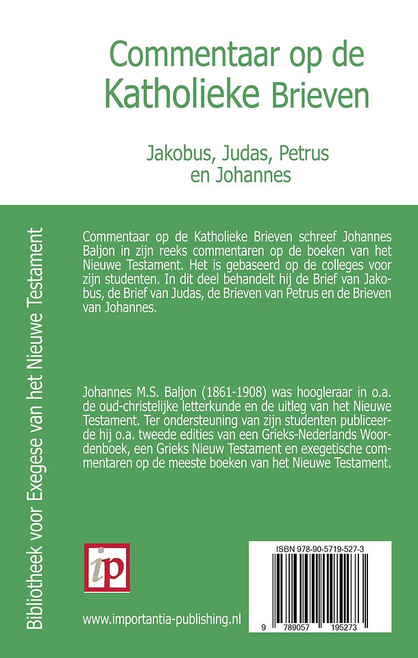 Commentaar op de Katholieke Brieven schreef Johannes Baljon in zijn reeks commentaren op de boeken van het Nieuwe Testament. Het is gebaseerd op de colleges voor zijn studenten. In dit deel behandelt hij de Brief van Jakobus, de Brief van Judas, de Brieven van Petrus en de Brieven van Johannes.