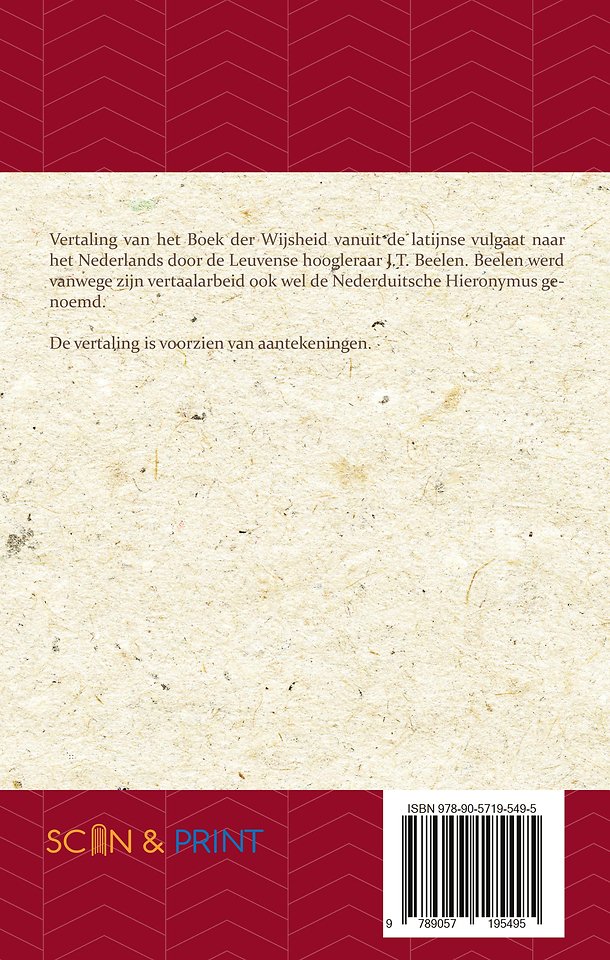 Vertaling van het Boek der Wijsheid vanuit de latijnse vulgaat naar het Nederlands door de Leuvense hoogleraar J.T. Beelen. Beelen werd vanwege zijn vertaalarbeid ook wel de Nederduitsche Hieronymus genoemd.