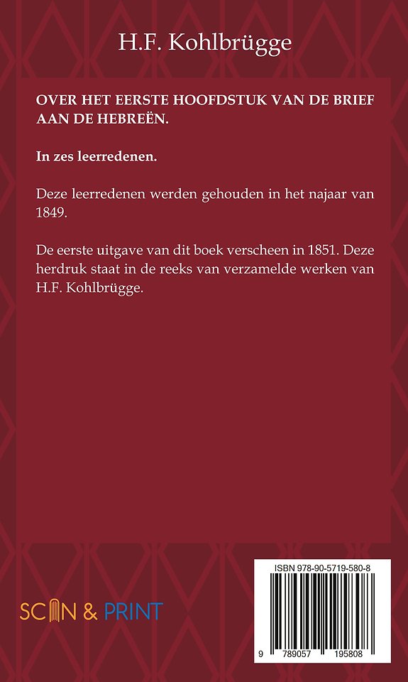 De eerste uitgave van dit boek verscheen in 1851. Deze herdruk staat in de reeks van verzamelde werken van H.F. Kohlbrügge.