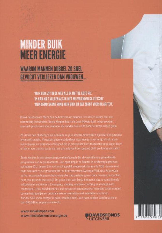 Klinkt herkenbaar? Meer dan de helft van de Vlaamse mannen is te dik en kampt met een hardnekkig (bier)buikje. Maar daar brengt Sonja Kimpen met haar nieuwste boek verandering in. Minder buik, meer energie is speciaal geschreven voor mannen, die zonder buik én fit door het leven willen gaan.