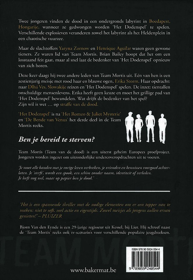 Maar slachtoffers Yaryna Zornow en Henrique Aguilar waren geen gewone tieners. Ze waren lid van Team Mortis. Brian Bailey en Filip Huistra hopen dat het incident om een losstaand feit gaat, maar al snel laat de bedenker van 'Het Dodenspel' opnieuw van zich horen.