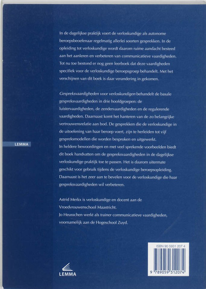 Dit boek behandelt de basale gespreksvaardigheden in drie hoofdgroepen: de luistervaardigheden, de zendervaardigheden en de regulerende vaardigheden. Daarnaast komt het hanteren van de zo belangrijke vertrouwensrelatie aan bod. De gesprekken die de verloskundige in de uitoefening van haar beroep voert, zijn te herleiden tot vijf gespreksmodellen die worden besproken en uitgewerkt. In heldere bewoordingen en met veel sprekende voorbeelden biedt dit boek handvatten om de gespreksvaardigheden in de dagelijkse verloskundige praktijk toe te passen. Het is daarom uitermate geschikt voor gebruik tijdens de verloskundige beroepsopleiding. Daarnaast is het zeer aan te bevelen voor de verloskundige die haar gespreksvaardigheden wil verbeteren.