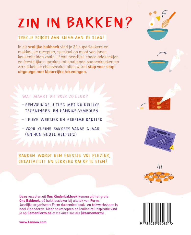Wat maakt dit boek zo leuk? Eenvoudige uitleg met duidelijke tekeningen en handige symbolen Leuke weetjes en geheime baktips Voor kleine bakkers vanaf 6 jaar (en hun grote helpers)