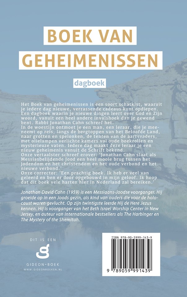 Het Boek van geheimenissen is een soort schatkist, waaruit je iedere dag nieuwe, verrassende cadeaus kunt opdiepen. Een dagboek waarin je nieuwe dingen leert over God en Zijn woord, vanuit een heel andere invalshoek dan je gewend bent. Rabbi Jonathan Cahn schreef het.