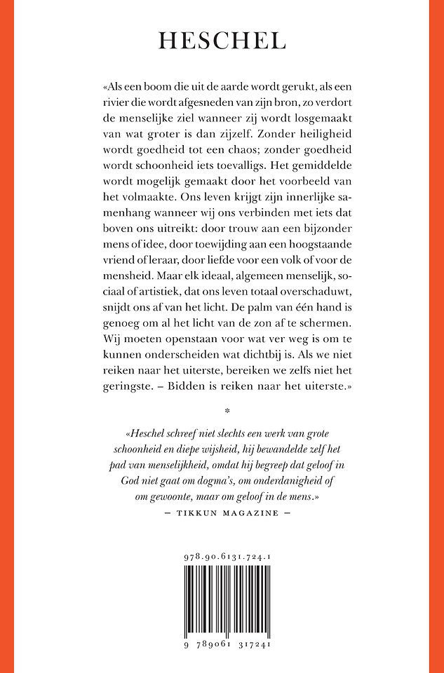 Abraham Joshua Heschel (1907-1972) geldt als een der belangrijkste joodse denkers van onze tijd. Hij werd geboren te Warschau als afstammeling van een vermaarde chassidische rabbijnendynastie. Van jongs af aan verwierf Heschel een doorwrochte kennis van de joodse gedachtewereld en het joodse religieuze erfgoed, door nimmer aflatende studie van de klassieke rabbinale geschriften.