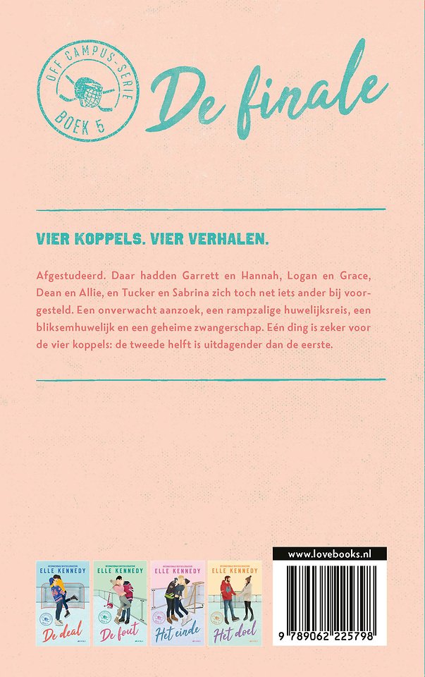 Alle delen van de Off Campus-serie (De deal, De fout, Het einde en Het doel) zijn los van elkaar te lezen. Aangeraden wordt om die boeken eerst te lezen voor aan De finale te beginnen, om spoilers te voorkomen.