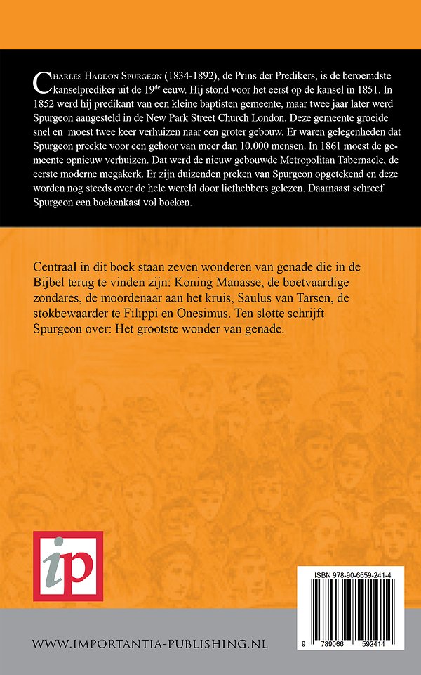 Centraal in dit boek staan zeven wonderen van genade die in de Bijbel terug te vinden zijn: Koning Manasse, de boetvaardige zondares, de moordenaar aan het kruis, Saulus van Tarsen, de stokbewaarder te Filippi en Onesimus. Ten slotte schrijft Spurgeon over: Het grootste wonder van genade.