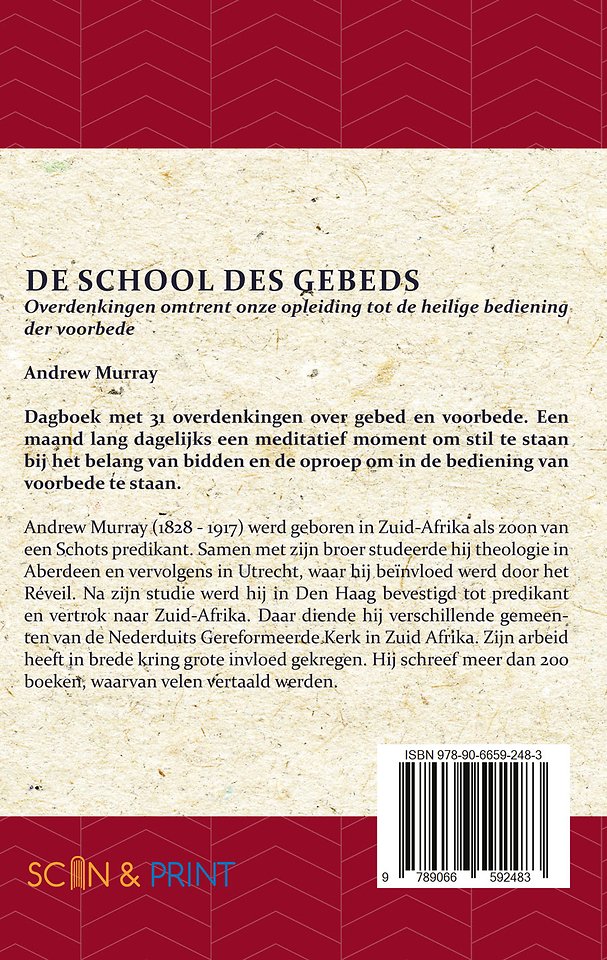 Andrew Murray (1828 - 1917) werd geboren in Zuid-Afrika als zoon van een Schots predikant. Samen met zijn broer studeerde hij theologie in Aberdeen en vervolgens in Utrecht, waar hij beïnvloed werd door het Réveil. Na zijn studie werd hij in Den Haag bevestigd tot predikant en vertrok naar Zuid-Afrika. Daar diende hij verschillende gemeenten van de Nederduits Gereformeerde Kerk in Zuid Afrika. Zijn arbeid heeft in brede kring grote invloed gekregen. Hij schreef meer dan 200 boeken, waarvan velen vertaald werden.