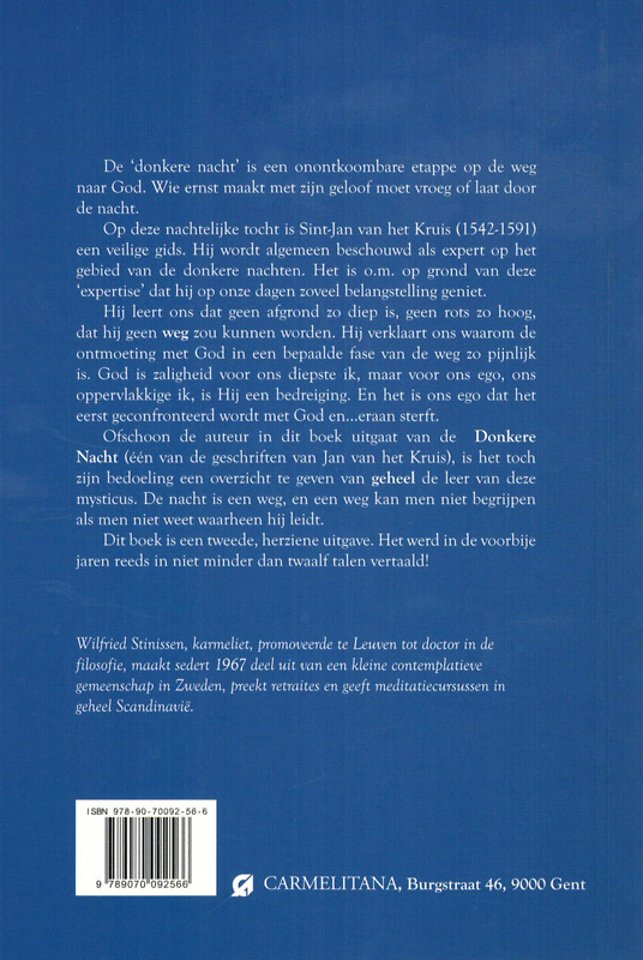 Op deze nachtelijke tocht is Sint-Jan van het kruis (1542-1591)een veilige gids. Hij wordt algemeen beschouwd als expert op het gebied van de donkere nachten. Het is o.m. op grond van deze 'expertise' dat hij op onze dagen zoveel belangstelling geniet. Hij leert ons dat geen afgrond zo diep is, geen rots zo hoog, dat hij geen weg kan worden. Hij verklaart ons waarom de ontmoeting met