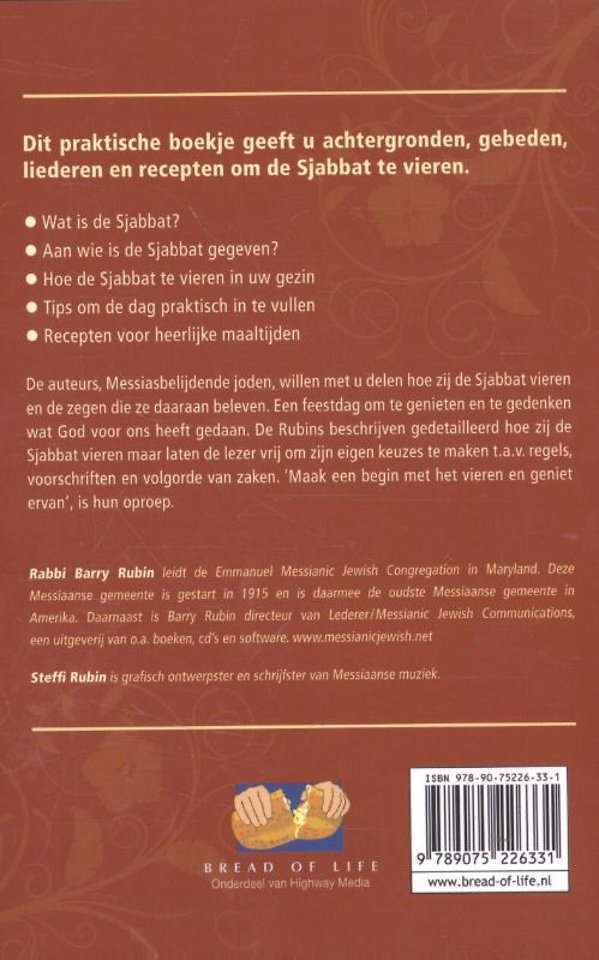 De auteurs, Messiasbelijdende joden, willen met u delen hoe zij de Sjabbat vieren en van de zegen die ze daaraan beleven. Een feestdag om te genieten en te gedenken wat God voor ons heeft gedaan. De Rubins beschrijven gedetailleerd hoe zij de Sjabbat vieren maar laten de lezer vrij om zijn eigen keuzes te maken t.a.v. regels, voorschriften en volgorde van zaken. "Maak een begin met het vieren en geniet ervan", is hun oproep.
