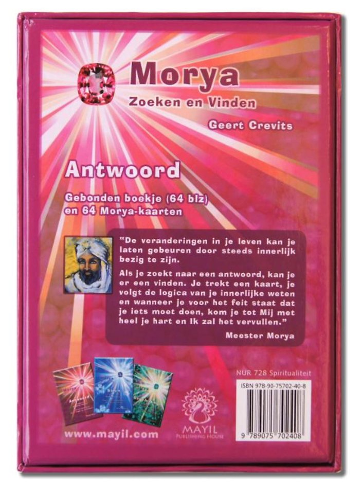 De Morya kaarten zijn ideaal voor het beantwoorden van al je vragen. Voor eenvoudige vragen trek je één kaart, voor complexe vragen trek je een kaart voor elke mogelijkheid die je voor je ziet. Het geheel van de kaarten geeft je inzicht in wat de beste keuze voor je is. Je kan de kaarten ook gebruiken om inzicht te verwerven in verwarrende omstandigheden. Het trekken van de kaarten geeft je duidelijkheid, leiding en versterkt je intuïtie en je eigen aanvoelen van situaties.