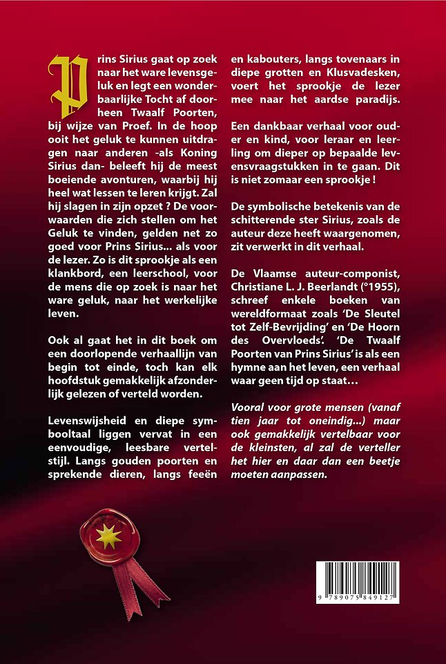 De Vlaamse auteur-componist, Christiane L. J. Beerlandt (°1955), schreef enkele boeken van wereldformaat zoals 'De Sleutel tot Zelf-Bevrijding' en 'De Hoorn des Overvloeds’. 'De Twaalf Poorten van Prins Sirius' is als een hymne aan het leven, een verhaal waar geen tijd op staat...