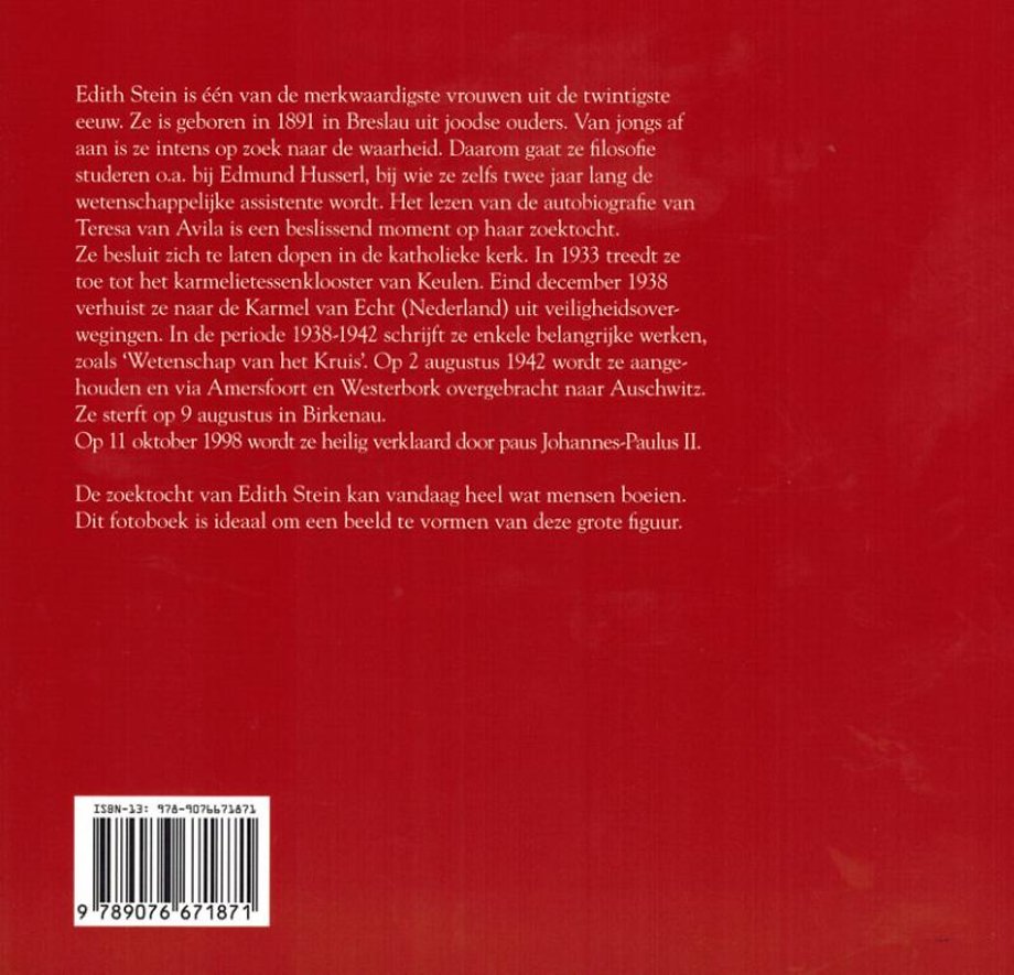 De zoektocht van Edith Stein kan vandaag heel wat mensen boeien. Dit fotoboek is ideaal om een beeld te vormen van deze grote figuur.