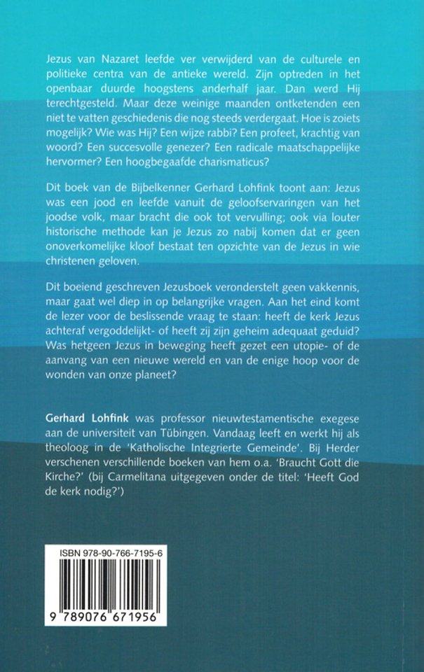 Dit boek van de Bijbelkenner Gerhard Lohfink toont het volgende aan: ook via louter historische methode kan je Jezus zo nabijkomen dat er geen onoverkomelijke kloof bestaat ten opzichte van de Jezus in wie de christenen geloven.